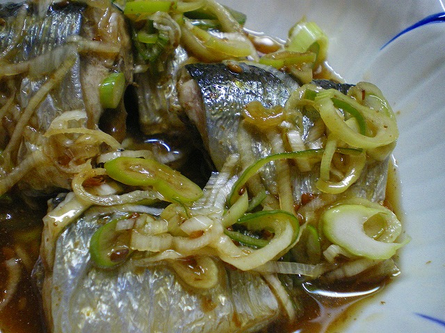 にほんブログ村 2012.09.02 Sun 13:54:13 秋刀魚の南蛮漬け新物の秋刀魚が安く売られていたので南蛮漬けを作ってみました。 材料は、秋刀魚、ねぎ、和風ドレッシング、酢。 秋刀魚は頭を切り落とし、ウロコを取ったあと、ワタを抜いて水洗いします。 そのあと食べやすい大きさに切ります。 グリルで10分くらい焼きます。 秋刀魚を焼いている間にねぎを切っておきます。 ちよっと多めなくらいが良いです。 秋刀魚が焼けたら深めの器に移します。 上からねぎをのせて その上から和風ドレッシングと酢を加えます。 分量はお好みで(^^; まだ秋刀魚がジュウジュウ言ってる間に手早く処理するのがポイントです。 ラップをしてそのまま冷蔵庫に入れて半日くらい寝かせて完成。 酢の酸味とねぎの風味、秋刀魚のほんのりした苦味がベストマッチ。 お酒が良くすすみますよ~。 今回は秋刀魚のワタを取り除いてしまいましたが そのまま使ったほうがお酒のおつまみとしては良いかもしれないです。 なんとなくの思いつきで作ったモノですが、意外にもおいしくて作った本人もびっくり(笑 お試しください。 ブログランキング参加中です。 クリックをお願いします。 おつまみレシピを扱った人気ブログがランキング形式で見れます。 にほんブログ村 |