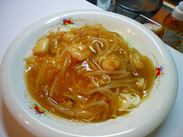 男40歳、今夜のおつまみ毎晩の晩酌をなによりの生きがいにしている中年おやじ。 2009年にWEBサイトから始めたブログも16年目。 すっかりアラカンのおっさんになってしまいました(笑) 日々の酒のおつまみとレシピを淡々と紹介します。 お手軽に作れる麺類レシピも。相互リンク募集中!PAGE | 190 194 193 192 191 188 189 187 186 185 184 | ADMIN | WRITE 2012.12.28 Fri 07:40:22 海鮮あんかけそうめん戸棚の奥から賞味期限切れ直前の素麺が発見されたため 緊急避難措置的にあんかけそうめんを作ってみました。 材料は、そうめん、シーフードミックス、もやし、麺つゆの素。 PR お手軽簡単 フリーズドライそうめん シーフードミックスは解凍したあとフライパンで炒めます。 シーフードミックスに火が通ったら、もやしを加えさっと炒めます。 水を加えひと煮立ちさせます。 一旦火を止め、めんつゆの素を加え、水溶き片栗粉でとろみをつけたら 再度火を入れ煮立ったらあんかけはできあがり。 素麺は普通に茹でたあと、水洗いしてぬめりを落としたものを湯通し。 器に盛り付けて、その上からあんかけをかけたら完成。 そうめんといえば夏の食べ物で、 今の季節に食べようとするとにゅうめんあたりがメジャーなのですが、 こういうあんかけ類も結構いけます。 家族からの評判も良かったので、麺類メニューのローテーション入りはほぼ確実かな~(笑 お試しください。 ブログランキング参加中です。 クリックをお願いします。 人気のおつまみブログがランキング形式で見れます。 にほんブログ村 PR CommentsComment Form |
