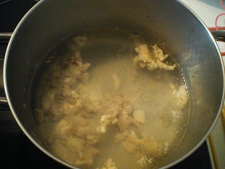 男40歳、今夜のおつまみ毎晩の晩酌をなによりの生きがいにしている中年おやじ。 2009年にWEBサイトから始めたブログも16年目。 すっかりアラカンのおっさんになってしまいました(笑) 日々の酒のおつまみとレシピを淡々と紹介します。 お手軽に作れる麺類レシピも。相互リンク募集中!PAGE | 211 210 209 208 207 206 205 204 203 202 201 | ADMIN | WRITE 2013.02.24 Sun 10:59:13 鶏蕎麦インスタント麺を作る時の規定量より少し多めの水を鍋に入れ 鶏もも肉を入れて煮ます。 沸騰したら弱火にして30分程度かけて出汁を取ります。 灰汁が出るので丁寧にすくってください。 灰汁を取るとこんな感じで澄んだスープになります。 そのスープを使ってインスタント麺を作ります。 器に盛り付けたら完成。 汁に鶏の出汁が利いてて、いつもとは一味ちがったインスタント蕎麦となりました。 お試しください。 ブログランキング参加中です。 クリックをお願いします。 人気のおつまみブログがランキング形式で見れます。 にほんブログ村 PR CommentsComment Form |