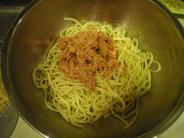 男40歳、今夜のおつまみ毎晩の晩酌をなによりの生きがいにしている中年おやじ。 2009年にWEBサイトから始めたブログも16年目。 すっかりアラカンのおっさんになってしまいました(笑) 日々の酒のおつまみとレシピを淡々と紹介します。 お手軽に作れる麺類レシピも。相互リンク募集中!PAGE | 294 293 292 291 290 289 288 287 286 285 284 | ADMIN | WRITE 2014.03.24 Mon 23:03:42 沖縄のからそば今回は沖縄で食べられているという「からそば」に挑戦してみました。 からそばとは、沖縄そばのゆで麺に缶詰を和えるだけという簡単料理。 テレビ番組で作り方など放送されているのを見て、 うちでもやってみるかという話になり、早速材料を調達。 麺は通販で沖縄のお店から送ってもらいました。 缶詰は近所のスーパーでゲット。 サバ味噌缶やツナ缶で作るとおいしいというネット情報があったので 今回は無難にその2つで作ってみます。 番組で紹介されていた作り方では、 「ゆで麺の袋に直接缶詰を入れて手でよく揉む」 ということになっていたのですが、 ゆで麺を直接食べるのって麺がボソボソしててイマイチなんじゃないかい? という意見が家族から出たので、お湯でさっと湯がいてから作ることにしました。 湯がいた麺をボウルに移してツナ缶を投入。 それをささっと混ぜたら完成。 サバ味噌煮も同じく混ぜるだけ。 あっさりと出来上がったところで試食してみます。 ツナ缶のほうはそれだけだと味が薄いので醤油とマヨネーズを追加。 なんかツナマヨネーズパスタみたいな感じでなかなかイケます。 サバ味噌煮缶のほうはしっかり味噌煮味がついているので そのままでグイグイ食べられます。 ツナマヨネーズパスタみたいと書きましたが それとの一番の大きな違いは麺の食感。 やや太くて固めな沖縄そば独特の食感が実にいい感じ。 沖縄ではゆで麺をそのまま缶詰と混ぜて食べるとのことですが あー、そっちのほうが美味しいかも❤️ って思いました。 家族にも好評で、また食べたいとリクエストをもらいました。 また作るにあたり、目下の課題は沖縄そばのゆで麺の入手方法。 近所のスーパーでは手に入らないし、かといって毎回通販だと送料がかかるし。。 都心のスーパーなら売ってるところがあるかな? 沖縄のアンテナショップを探してみるのも手だな〜 ↓こんなやつです。 PR CommentsComment Form |