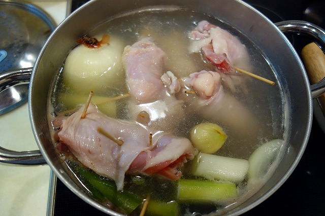 男40歳、今夜のおつまみ毎晩の晩酌をなによりの生きがいにしている中年おやじ。 2009年にWEBサイトから始めたブログも16年目。 すっかりアラカンのおっさんになってしまいました(笑) 日々の酒のおつまみとレシピを淡々と紹介します。 お手軽に作れる麺類レシピも。相互リンク募集中!PAGE | 421 418 417 416 356 355 354 353 352 351 350 | ADMIN | WRITE 2016.12.25 Sun 10:26:15 鶏ガラ出汁蕎麦鶏肉から骨をはずして鍋に入れ出汁をとります。 鶏肉のほうは肉の厚い部分に包丁を入れたあと くるくるとチャーシュー状に巻いて、爪楊枝などで止めておきます。 出汁のほうには葱、たまねぎ、にんにく、しょうがを加えます。 そこに先ほどの鶏肉を投入。2時間ほど弱火で煮ます。 灰汁が出てくるのでこまめに灰汁とり。 2時間ほどしたら鶏肉を取り出し、ジップロックなどに麺つゆと一緒に入れて 冷蔵庫で寝かせておきます。 出汁のほうはそのまま6時間くらい弱火で煮続けます。 6時間後。いい感じで出汁が取れました。 鶏肉のほうもいい感じで味がしみ込みました。 今回はちょっとひを通しすぎたのか身が崩れ気味になってしまいました。 あとは器に麺つゆの原液を入れてその上から出汁を注ぎます。 別途茹でた蕎麦を盛り付け、その上に鶏肉を載せたら完成。 すんごい濃厚でとろんとしたスープで蕎麦との相性もばっちり。 ものすげー調理時間がかかるので普段はとても作れないなこれ(笑 クリスマス限定ってことで。 にほんブログ村 PR CommentsComment Form |