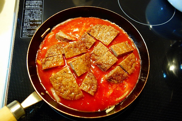男40歳、今夜のおつまみ毎晩の晩酌をなによりの生きがいにしている中年おやじ。 2009年にWEBサイトから始めたブログも16年目。 すっかりアラカンのおっさんになってしまいました(笑) 日々の酒のおつまみとレシピを淡々と紹介します。 お手軽に作れる麺類レシピも。相互リンク募集中!PAGE | 427 426 425 424 423 422 419 421 418 417 416 | ADMIN | WRITE 2017.02.13 Mon 08:10:52 パスタソースを使ったお手軽煮込みハンバーグフライパンに油をひき、玉ねぎを炒めます。 玉ねぎに火が通ったら、パスタソース投入。 さらにトマトジュースも。 ついでに赤ワインも加えるとぐっと味が深くなります。 そこに食べやすい大きさに切ったハンバーグを投入。 今回はマルシンハンバーグを使用♪