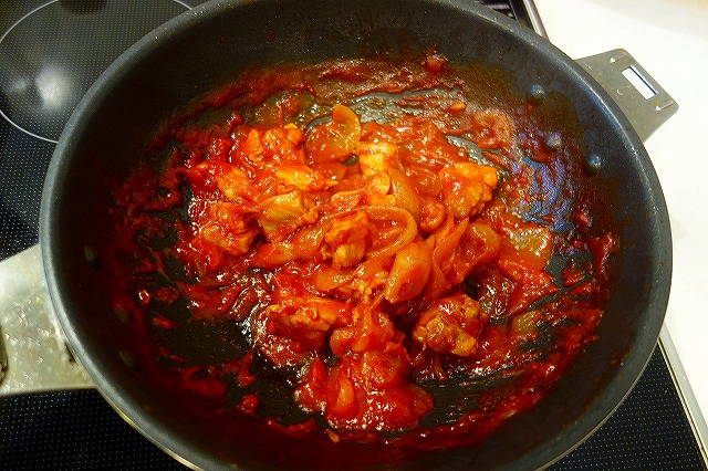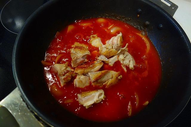 男40歳、今夜のおつまみ毎晩の晩酌をなによりの生きがいにしている中年おやじ。 2009年にWEBサイトから始めたブログも16年目。 すっかりアラカンのおっさんになってしまいました(笑) 日々の酒のおつまみとレシピを淡々と紹介します。 お手軽に作れる麺類レシピも。相互リンク募集中!PAGE | 437 436 435 434 433 432 431 430 429 428 427 | ADMIN | WRITE 2017.03.27 Mon 08:04:58 パスタソースで作る簡単鶏肉のトマトソース煮今回はパスタソースを使ってお手軽に作れる鶏肉のトマトソース煮を作ってみました。 材料は、鶏もも肉、たまねぎ、トマト系のパスタソース。 まずは鶏肉を焼きます。 肉の厚い部分には包丁を入れ、火が通りやすいようにしておいてから 塩コショウして、皮の部分を下にして中火で7~8分焼きます。 ひっくり返してさらに7~8分。 楊枝を刺してみて透明の肉汁が出るようだったら中まで火が通ってます。 フライパンからあげて食べやすい大きさに切ります。 フライパンで玉ねぎを炒めます。 玉ねぎに火が通ったらパスタソースを投入。 さらに先ほどの鶏肉も投入。 そこそこに汁気を飛ばしたら完成。 前に作ったハンバーグの煮込みと同じ要領ですね。 こちらも煮込む前に赤ワインなどを入れると 風味があがってぐっと本格的な味になります。 お弁当のおかず、お酒のおつまみにどうぞ~ PR CommentsComment Form |