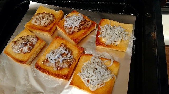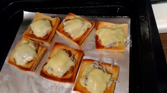 男40歳、今夜のおつまみ毎晩の晩酌をなによりの生きがいにしている中年おやじ。 2009年にWEBサイトから始めたブログも16年目。 すっかりアラカンのおっさんになってしまいました(笑) 日々の酒のおつまみとレシピを淡々と紹介します。 お手軽に作れる麺類レシピも。相互リンク募集中!PAGE | 484 483 481 480 479 478 477 476 475 474 473 | ADMIN | WRITE 2020.09.21 Mon 15:28:29 油揚げのひとくちサイズの納豆ピザ油揚げを生地に使った一口サイズのピザを作ってみました。 材料:油揚げ、マヨネーズ、納豆、しらす干し、とろけるチーズ 油揚げを一口サイズに切ります。 トースターで両面をカリッと焼いておきます。 納豆にタレとマヨネーズを混ぜます。 先ほどの焼いた油揚げの上に載せます。 さらにその上にとろけるチーズをのせて、トースターで3~4分焼いたら完成。 こんな感じ。 今回は具に納豆としらす干しを使いましたが、お好みの具でもOKです。 こんな感じで、ケチャップなんかをつけても美味いです~ 具次第でどんなお酒にもあう万能おつまみです。 お試しください。