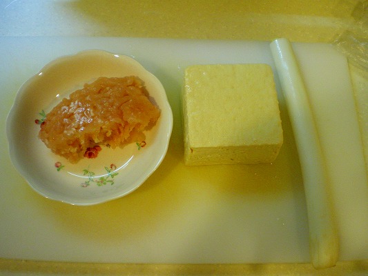 男40歳、今夜のおつまみ毎晩の晩酌をなによりの生きがいにしている中年おやじ。 2009年にWEBサイトから始めたブログも16年目。 すっかりアラカンのおっさんになってしまいました(笑) 日々の酒のおつまみとレシピを淡々と紹介します。 お手軽に作れる麺類レシピも。相互リンク募集中!PAGE | 22 23 24 25 26 27 28 29 30 31 32 | ADMIN | WRITE 2011.08.14 Sun 09:24:22 ゴーヤチャンプルー夏の定番、ゴーヤチャンプルーを作ってみました。 材料は、ゴーヤ、卵、豚バラ肉、木綿豆腐、だしのもと、醤油。 フライパンに油をひき、豚肉とゴーヤを炒めます。 火が通ったら、一度フライパンから取り出します。 よく水切りした豆腐を、焼き目が付くまで炒めます。 豚肉とゴーヤを戻し、醤油とだしのもとで味付けをして、 最後に溶き卵を入れて、ふつふつとしてきたら火を止めて完成。 ゴーヤと豚肉は夏の疲れにも効果が高いみたいですね~。 夏休みで遊び疲れた方も是非。 ブログランキング参加中です。 クリックをお願いします。 おつまみレシピを扱った人気ブログがランキング形式で見れます。 にほんブログ村 PR 2011.08.08 Mon 12:43:47 手作りイカの塩辛冷凍イカが1パイ198円だったので、早速ゲットして塩辛にしてみました。 材料はイカ、塩。 イカは胴体を開くと肝が出てくるので、これを取り出しておきます。 取り出しのときに傷つけてしまわないように注意。 胴体の身のほうは、軟骨とえんぺらを取り除いたあと 皮を剥いて食べやすい大きさに切ります。 これに先程の肝を搾り出して混ぜ合わせます。 ここで塩を投入します。 量は全体量の10%くらいを目安にお好みで。 これを熱湯で消毒した容器に移して、冷蔵庫で2~3日寝かせて完成。 酒のおつまみ、ごはんのお供にどうぞ~。 ブログランキング参加中です。 クリックをお願いします。 おつまみレシピを扱った人気ブログがランキング形式で見れます。 にほんブログ村 2011.07.25 Mon 12:52:25 豚肉の紅茶煮豚バラ肉のブロックが安かったので紅茶煮を作ってみました。 材料は豚のブロック肉、紅茶のティーパック、醤油、酒、みりん、酢。 大きめの鍋にお湯を沸かして、その中にティーバックを3袋入れます。 紅茶の色が出たら、豚ブロック肉を適当な大きさに切り弱火で30分程度煮ます。 30分後にはこんな感じ。 鍋から取り出したところ。 茹でた肉を漬けるタレを作ります。 醤油・酢・みりん・酒を2:1:1:1の割合で混ぜます。 全体で200ccくらいあれば良いと思います。 タレと豚肉をジップロックに入れて1時間ほど漬け込みます。 漬けるとこんな感じになります。 これを食べやすい大きさに切り分けて完成。 紅茶で煮込むことによって肉のくさみがなくなり、さらにやわらかく仕上がってことのほか美味です。 おつまみだけでなく、ラーメンの具やごはんにのせて豚バラ丼なんかにしてもおいしいですよ~ ブログランキング参加中です。 クリックをお願いします。 おつまみレシピを扱った人気ブログがランキング形式で見れます。 にほんブログ村 2011.07.19 Tue 12:38:57 塩豆腐と味噌豆腐市販の絹ごし豆腐を使って、塩豆腐と味噌豆腐を作ってみました。 材料は絹ごし豆腐と塩、味噌。 よく水切りした豆腐に味噌・塩をそれぞれつけて、キッチンペーパーで包みます。 左側が味噌、右側が豆腐です。 そのままラップをして冷蔵庫で1~2日寝かせます。 豆腐につけるタレです。醤油、マヨネーズ、ワサビを混ぜ合わせます。 分量はお好みで(^^; 冷蔵庫で寝かせることによって水分が抜けて、豆腐とは思えない濃厚な食感になります。 お手軽に作れますのでお試しあれ。 ブログランキング参加中です。 クリックをお願いします。 おつまみレシピを扱った人気ブログがランキング形式で見れます。 にほんブログ村 2011.07.11 Mon 15:20:08 白い麻婆豆腐スーパーにおいてあるレシピのチラシで「白い麻婆豆腐」というのがあったので作ってみました。 材料は、鶏ひき肉、豆腐、ねぎ、鶏がらスープのもと、白胡椒、片栗粉、胡麻油。 フライパンに油をひき、弱火でねぎを炒め 香りが出たら鶏ひき肉を加えて炒める。 ひき肉に火が通ったら鶏がらスープを加え そこにさいの目に切った豆腐を入れる。 煮立ったら胡椒を加える。辛さはお好みで。 一旦火を止めて、水溶き片栗粉を加えたら 再び火にかけて、ひと煮立ちしたら胡麻油を加えて完成。 胡椒の辛さと香りが食欲を誘います。 ビールのおつまみにどうぞ~。 ブログランキング参加中です。 クリックをお願いします。 おつまみレシピを扱った人気ブログがランキング形式で見れます。 にほんブログ村 |