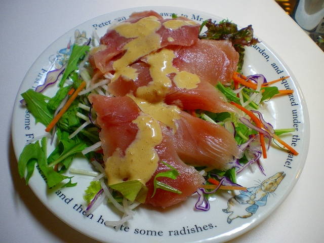 男40歳、今夜のおつまみ毎晩の晩酌をなによりの生きがいにしている中年おやじ。 2009年にWEBサイトから始めたブログも16年目。 すっかりアラカンのおっさんになってしまいました(笑) 日々の酒のおつまみとレシピを淡々と紹介します。 お手軽に作れる麺類レシピも。相互リンク募集中!PAGE | 27 28 29 30 31 32 33 34 35 36 37 | ADMIN | WRITE 2010.01.27 Wed 20:00:00 まぐろのあぶり焼きまぐろのサクを買ってきたのですが、刺身で食べたところイマイチだったので ちょっと手を加えてあぶり焼きにしてみました。 材料はまぐろのさく、醤油、豆板醤、日本酒。 フライパンにごま油をひいて加熱し、まぐろの表面をさっと焼きます。 こんな感じ。 焼いたらフライパンから取り出して食べやすい大きさに切っておきます。 つぎはタレ作り。 先ほどのフライパンに醤油、豆板醤、日本酒を加え、さっと混ぜ合わせます。 出来上がったタレをさきほどの切り身にかけて完成。 豆板醤がピリっと効いていて、ビールのおつまみにお勧めです。 ブログランキング参加中です。クリックをお願いします。 おつまみレシピを扱った人気ブログがランキング形式で見れます。 PR 2010.01.16 Sat 20:00:00 牛肉と厚揚げ、大根の煮物2010.01.10 Sun 20:00:00 オクラと長いもの鰹節かけタイトルそのまんまですが作ってみました(^^; 材料はオクラと長いも。 オクラはさっと茹でておきます。 長いもは細切りにして。 その上に輪切りにしたオクラ。 鰹節を散らせて完成。 醤油またはポン酢をかけてどうぞ。 ↓ブログランキング参加中です。クリックをお願いします。 おつまみレシピを扱った人気ブログがランキング形式で見れます。 2010.01.07 Thu 20:00:00 まぐろのカルパッチョお手軽に作れる「まぐろのカルパッチョ」に挑戦してみました。 材料は「切れてる野菜」と「切れてるまぐろ」(笑 ソースはマヨネーズ、オリーブオイル、醤油、すりおろしにんにく。 これらを絡めて、まぐろの上へ。 ビールでおいしくいただきました。 ↓ブログランキング参加中です。クリックをお願いします。 おつまみレシピを扱った人気ブログがランキング形式で見れます。 |