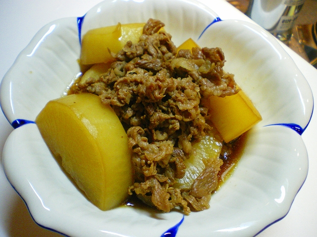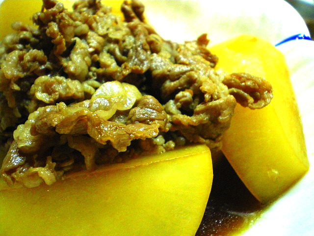 男40歳、今夜のおつまみ毎晩の晩酌をなによりの生きがいにしている中年おやじ。 2009年にWEBサイトから始めたブログも16年目。 すっかりアラカンのおっさんになってしまいました(笑) 日々の酒のおつまみとレシピを淡々と紹介します。 お手軽に作れる麺類レシピも。相互リンク募集中!PAGE | 30 31 32 33 34 35 36 37 38 39 40 | ADMIN | WRITE 2009.10.11 Sun 20:00:00 秋の味覚「松茸」2009.10.07 Wed 20:00:00 ナスのしぎやき2009.10.05 Mon 20:00:00 なすのあんかけ2009.09.30 Wed 20:00:00 牛肉と大根の煮物以前作った牛肉のにんにく焼き大根おろしのせと同じ材料(牛肉と大根)を使って煮物にしてみました。 ・材料 牛肉 100g 大根 1/4本 めんつゆ 200cc ・作り方 鍋に油をひき、牛肉を炒める。 めんつゆと大根を加えて煮る。 煮汁が半量くらいになったら完成。 「牛肉のにんにく焼き大根おろしのせ」と同じ材料なのに 出来上がりのイメージはまるで別モノですね~(笑。 純和風って感じです。 日本酒のお供にどうぞ。 2009.09.28 Mon 20:00:00 <Y150>横浜ハヤシヌードル今朝のyahooニュースで<横浜開国博>入場者数が見込みの約4分の1のまま閉幕なんていうのが出てました。 横浜開国博とは4月28日に開幕し今月27日に閉幕した 横浜開港150周年を祝うイベントとのこと。 そういえば私、こんなの食べてました。 「横浜ハヤシヌードル」 このイベントにあわせて発売されたカップ麺。 近所のスーパーで98円で売りに出ていたのをゲットしたもの。 「ハヤシヌードル」なるものになんとなく惹かれたので。 横浜港開港150周年記念商品という文字が入っています。 中はこんな感じ。この茶色いつぶつぶが「ハヤシ」のもとっぽいです。 というわけで早速試食。 見た目はふつーのカップヌードルですが、味のほうはというと ・・・・・・なんかハヤシライスの独特の甘みが麺にはいまいちしっくりきません。 あととろみなのかもしれませんが「ぬるっ」とした感触があってこっちもやや違和感が。。 そこでふっと思いついて冷蔵庫に入っていたごはんの残りにかけてみたところ うむ、うまいっす。 やっぱりハヤシにはごはんですね。 この「ハヤシヌードル」以外には「提督カレーヌードル」とかなんとかいうやつ(うるおぼえ)もありました。 カレーのほうが麺には無難だったのかも。 ネットで調べてみると、ヌードル以外にも記念商品がたくさんあるみたいですね。 「開港150周年」で検索してみるとヒット数はなんと2,183件! ヌードル、お菓子類に始まり、「ネコ缶」に至るまで えらい盛り上がりようだったりします。 ちなみに本来のイベントの「横浜開国博」のほうは入場者数の見込みが 500万人だったのに対し、実際には120万人に留まり 約20億円の赤字なのだそうです。 イベントのほうもネット通販並みに盛り上がってくれたらよかったのですが。。(^^; |