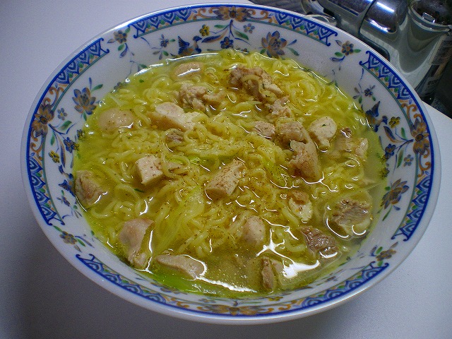 男40歳、今夜のおつまみ毎晩の晩酌をなによりの生きがいにしている中年おやじ。 2009年にWEBサイトから始めたブログも16年目。 すっかりアラカンのおっさんになってしまいました(笑) 日々の酒のおつまみとレシピを淡々と紹介します。 お手軽に作れる麺類レシピも。相互リンク募集中!PAGE | 53 54 55 56 57 58 59 60 61 62 63 | ADMIN | WRITE 2012.12.08 Sat 07:02:29 本格中華っぽい肉もやしラーメン豚コマ肉ともやしがあったので、肉もやしラーメンを作ってみました。 いつもと同じ作り方だと芸がないので、 ひと手間加えて、本格中華っぽい雰囲気を出してみることにします。 材料は豚コマ肉、もやし、お好みのインスタントラーメン。 片栗粉、醤油、酒、すりおろし生姜少々。 まずは豚肉に醤油、酒、おろし生姜で下味をつけます。 そのあと片栗粉を加えてよく揉み込みます。 フライパンに多めの油をひき、さきほどの豚肉を炒めます。 肉に火が通ったら、もやしを加えてさっと炒めます。 PR あんかけスパ その間にお好みのインスタントラーメンを普通に作ります。 ラーメンが出来上がったらどんぶりに盛り付け、その上に炒めた肉もやしを乗せて完成。 豚肉に生姜などでしっかりと下味をつけ、 片栗粉をまぶして炒めることにより肉の味が中に閉じ込められ、 さらに片栗粉でつるんとした食感になり、 かなり中華っぽい雰囲気に仕上がりますよ~。 お試しください。 ブログランキング参加中です。 クリックをお願いします。 人気のおつまみブログがランキング形式で見れます。 にほんブログ村 PR 2012.12.05 Wed 07:22:45 マルタイラーメンと温泉卵たまたまスーパーのインスタント麺売り場で 「マルタイラーメン」なるものを発見したので試してみました。 ラーメンというより、素麺っぽい雰囲気です。158円なり。 「生の風味」というのを売りにしいてるっぽい。 中をあけるとこんな感じ。 乾麺、油、粉末スープ。 ちなみにこの「マルタイラーメン」にはいろいろのバージョンがあるらしい。 とりあえず完成。 作り方は普通のインスタント麺と特に変わりません。 まあ、これだけではなんなので、トッピングに温泉卵を付けることにします。 これまでの経験上、卵は7分茹でるとじゅくじゅくの半熟卵になり 8分茹でると普通の半熟卵、10分茹でると固ゆで卵になることは分かっているのですが 温泉卵風に仕上げるには何分茹でるかは未体験ゾーン。 とりあえず、3分茹でてみることにします。 で、3分茹でた結果がこれ・・・。 時間が長すぎたか、白身が固まりすぎてしまいました。 まあ、とりあえず今回はこれで完成ということで(^^; 温泉卵・・・・。茹で時間は2分半くらいが妥当か? というわけで早速試食。 麺はラーメンというより、ラーメンと蕎麦と素麺を足して3で割ったような雰囲気。 しかしすごくしっとりしていて、生麺に近い食感。 「生の風味」の看板に偽り無しです。 確かに普通のインスタント麺とは1段上の味ですね。 バリエーションもいろいろあるみたいなので、チャンスがあったら試してみます。 カップ麺もあるらしいです。 ブログランキング参加中です。 クリックをお願いします。 人気のおつまみブログがランキング形式で見れます。 にほんブログ村 2012.12.01 Sat 13:35:28 電子レンジで作る蒸し鶏鶏モモ肉が安かったので、電子レンジで作れるレモン風味の蒸し鶏を作ってみました。 材料は鶏モモ肉、玉ねぎ、レモン汁。 鶏肉は皮の反対側の面から開いておきます。 玉ねぎはスライスし、耐熱皿の上に敷いておきます。 その上に皮のほうを上に向けて鶏肉を置き、 レモン汁、塩、胡椒を適量振り掛けます。 PR 今だけ半額!! 宮崎県産銘柄鶏“とねどり” 上からラップをかけます。 左右両側は蒸気が逃げられるように緩めにしておきます。 電子レンジで7分ほど加熱します。 玉ねぎからの水分が出て蒸し鶏状態になります。 取り出したところ、いい感じで蒸しあがっています。 鶏を食べやすい大きさに切って、皿に盛り付けて完成。 電子レンジで加熱すると肉が硬くなるようなイメージがあったのですが 玉ねぎの水分のおかげで蒸し器を使ったようなふんわりした蒸し鶏に仕上がります。 塩、胡椒がいい感じで効いていてビールのおつまみにちょうど良い感じ。 ワイン、日本酒なんかにも合いそうです。 材料を切って電子レンジに入れるだけでとても簡単にできるので ぜひお試しください。 ブログランキング参加中です。 クリックをお願いします。 人気のおつまみブログがランキング形式で見れます。 にほんブログ村 2012.11.23 Fri 09:49:21 肉卵とじ蕎麦私はもともと蕎麦大好きなのですが、蕎麦は食べ方のバリエーションが ラーメンなんかと比べると大分少ないのが難点です。 というわけで、今回は新たな蕎麦の食べ方を模索すべく(笑、 肉卵とじ蕎麦を作ってみました。 材料は、卵、豚バラ肉、ネギ、蕎麦乾麺、麺つゆ。 まずは蕎麦を茹で、麺つゆを温め 掛け蕎麦を作っておきます。 つぎに蕎麦に乗せる卵と