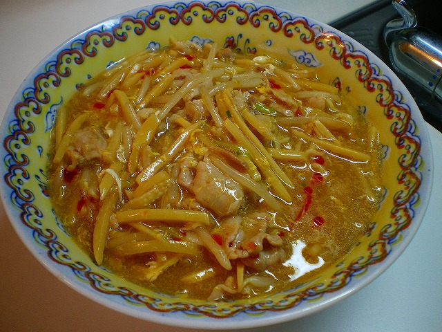 男40歳、今夜のおつまみ毎晩の晩酌をなによりの生きがいにしている中年おやじ。 2009年にWEBサイトから始めたブログも16年目。 すっかりアラカンのおっさんになってしまいました(笑) 日々の酒のおつまみとレシピを淡々と紹介します。 お手軽に作れる麺類レシピも。相互リンク募集中!PAGE | 55 56 57 58 59 60 61 62 63 64 65 | ADMIN | WRITE 2012.09.02 Sun 13:54:13 秋刀魚の南蛮漬け新物の秋刀魚が安く売られていたので南蛮漬けを作ってみました。 材料は、秋刀魚、ねぎ、和風ドレッシング、酢。 秋刀魚は頭を切り落とし、ウロコを取ったあと、ワタを抜いて水洗いします。 そのあと食べやすい大きさに切ります。 グリルで10分くらい焼きます。 秋刀魚を焼いている間にねぎを切っておきます。 ちよっと多めなくらいが良いです。 秋刀魚が焼けたら深めの器に移します。 上からねぎをのせて その上から和風ドレッシングと酢を加えます。 分量はお好みで(^^; まだ秋刀魚がジュウジュウ言ってる間に手早く処理するのがポイントです。 ラップをしてそのまま冷蔵庫に入れて半日くらい寝かせて完成。 酢の酸味とねぎの風味、秋刀魚のほんのりした苦味がベストマッチ。 お酒が良くすすみますよ~。 今回は秋刀魚のワタを取り除いてしまいましたが そのまま使ったほうがお酒のおつまみとしては良いかもしれないです。 なんとなくの思いつきで作ったモノですが、意外にもおいしくて作った本人もびっくり(笑 お試しください。 ブログランキング参加中です。 クリックをお願いします。 おつまみレシピを扱った人気ブログがランキング形式で見れます。 にほんブログ村 PR 2012.07.28 Sat 13:31:17 夏のスタミナ冷しそば今年の夏は暑いですね~ この暑さに負けないよう、スタミナ冷しそばを作ってみました。 材料は豚バラ肉、長いも、そば、にんにく、麺つゆ、焼肉のたれ。 長いもはすりおろして、すり鉢でなめらかにします。 ごま油ですりおろしたにんにくを炒め、香りが出たらバラ肉を加えます。 火が通ったら焼肉のタレで味付けします。 茹でた後、冷水に浸した麺を器に盛り、麺つゆをかけ そのうえにすりおろした長いも、炒めた肉を乗せたら完成。 麺つゆは味濃い目、量は少なめにするところがポイントかな。 食欲がないときにもつるつるっと頂けますよ~。 お試しください。 ブログランキング参加中です。 クリックをお願いします。 おつまみレシピを扱った人気ブログがランキング形式で見れます。 にほんブログ村 2012.05.06 Sun 09:44:03 舞茸あんかけにゅうめん舞茸とそうめんが安かったのでにゅうめんを作ってみました。 材料は、まいたけ、そうめん、かまぼこ、麺つゆ、片栗粉。 まずは麺つゆ用にお湯を沸かし、沸騰したら舞茸を投入します。 舞茸にさっと火を通したら、麺つゆのもとを加えます。 そのあと、水で溶いた片栗粉を少量入れてとろみをつけます。 とろみの加減はお好みで。 続いて麺を茹でます。 茹で上がった麺を器に盛り付け、その上に汁をかけて、 切ったかまぼこを添えたら完成です。 にゅうめんは麺が汁を吸ってのびやすいってことがあり ちょっと敬遠しがちだったのですが、 汁に片栗粉でとろみをつけることで、そのへんがうまく解消できました。 舞茸の風味が豊かで、飲んだ後のシメの一杯に最適ですよ~。 お試しください。 ブログランキング参加中です。 クリックをお願いします。 おつまみレシピを扱った人気ブログがランキング形式で見れます。 にほんブログ村 2012.04.26 Thu 12:12:49 若狭家のお値打ち丼秋葉原に所用ででかけたとき、「お値打ち丼 390円」なる看板を発見し 脊髄反射的に立ち寄ってきました。 店の名前は海鮮丼物の店「若狭屋」。 他のメニューを見ると「まぐろ丼820円」とか「うにいくら丼1260円」とか、それなりのお値段。 それから見ても390円は明らかに安すぎ感が。 お値打ち丼だけではなんだか申し訳ない気分になったので 「味噌汁・とろろセット」も一緒にオーダー。といっても100円なのですが。。。 あわせて490円なり。 で、出てきたのがこれ。 いくらが4粒しか乗ってないのはご愛嬌(^^; 一緒にたのんだ「味噌汁・とろろセット」。 味のほうは、まあ390円なので多くは期待していなかったのですが それでもこの価格でこの内容なら十分すぎるでしょうといった感じ。 自分でスーパーでお刺身買ってきて作るとしても 390円でここまでのものを作るのは無理。 そう考えるとCPはとても高いと思われます。 秋葉原もヨドバシカメラが進出して以来、こういったお食事処がたくさん出てきて うれしい限りです。 昔なんか、秋葉原のお食事処といえば「牛丼のどんどん」くらいしかなかったのに。。 (歳がバレますな^^;) 場所:東京都千代田区外神田3-15-7 ブログランキング参加中です。 クリックをお願いします。 おつまみレシピを扱った人気ブログがランキング形式で見れます。 にほんブログ村 2012.03.09 Fri 12:11:21 酸辣湯麺しょうゆ味のインスタントラーメンを使って酸辣湯麺を作ってみ