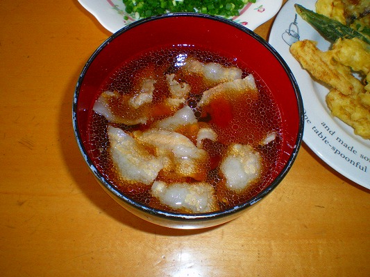 男40歳、今夜のおつまみ毎晩の晩酌をなによりの生きがいにしている中年おやじ。 2009年にWEBサイトから始めたブログも16年目。 すっかりアラカンのおっさんになってしまいました(笑) 日々の酒のおつまみとレシピを淡々と紹介します。 お手軽に作れる麺類レシピも。相互リンク募集中!PAGE | 59 60 61 62 63 64 65 66 67 68 69 | ADMIN | WRITE 2011.08.29 Mon 12:45:41 鮪のピリ辛漬け鮪の刺身を使ってピリ辛漬けを作ってみました。 材料は鮪の刺身、ごま油、塩、豆板醤。 鮪は食べやすい大きさにぶつ切りにします。 器に、ごま油、塩、豆板醤をいれ混ぜ合わせます 分量はお好みで(^^; これに先ほどの鮪を加えて和えたら完成。 ビールのおつまみに最適ですよ~ ![]() ブログランキング参加中です。 クリックをお願いします。 おつまみレシピを扱った人気ブログがランキング形式で見れます。 にほんブログ村 PR 2011.08.22 Mon 12:54:40 ゴーヤの肉詰め材料は、ゴーヤ、ねぎ、ニラ、豚ひき肉、しょうが、にんにく。 豚ひき肉にねぎ、ニラ、しょうが、にんにくを混ぜ ごま油と塩を加えておきます。 これを、輪切りにして種を取り除いたゴーヤに詰めます。 そのままラップをして電子レンジで3~4分ほど加熱したら完成。 シュウマイのように酢醤油をつけてどうぞ~。 ブログランキング参加中です。 クリックをお願いします。 おつまみレシピを扱った人気ブログがランキング形式で見れます。 にほんブログ村 2011.08.14 Sun 09:24:22 ゴーヤチャンプルー夏の定番、ゴーヤチャンプルーを作ってみました。 材料は、ゴーヤ、卵、豚バラ肉、木綿豆腐、だしのもと、醤油。 フライパンに油をひき、豚肉とゴーヤを炒めます。 火が通ったら、一度フライパンから取り出します。 よく水切りした豆腐を、焼き目が付くまで炒めます。 豚肉とゴーヤを戻し、醤油とだしのもとで味付けをして、 最後に溶き卵を入れて、ふつふつとしてきたら火を止めて完成。 ゴーヤと豚肉は夏の疲れにも効果が高いみたいですね~。 夏休みで遊び疲れた方も是非。 ブログランキング参加中です。 クリックをお願いします。 おつまみレシピを扱った人気ブログがランキング形式で見れます。 にほんブログ村 2011.08.08 Mon 12:43:47 手作りイカの塩辛冷凍イカが1パイ198円だったので、早速ゲットして塩辛にしてみました。 材料はイカ、塩。 イカは胴体を開くと肝が出てくるので、これを取り出しておきます。 取り出しのときに傷つけてしまわないように注意。 胴体の身のほうは、軟骨とえんぺらを取り除いたあと 皮を剥いて食べやすい大きさに切ります。 これに先程の肝を搾り出して混ぜ合わせます。 ここで塩を投入します。 量は全体量の10%くらいを目安にお好みで。 これを熱湯で消毒した容器に移して、冷蔵庫で2~3日寝かせて完成。 酒のおつまみ、ごはんのお供にどうぞ~。 ブログランキング参加中です。 クリックをお願いします。 おつまみレシピを扱った人気ブログがランキング形式で見れます。 にほんブログ村 2011.08.02 Tue 13:14:05 肉汁素麺このところ、涼しい日が続いてます。 夏といえば、冷たい素麺が個人的には定番だったりするわけですが 今回はこういう涼しい日にオススメの暖かいつけ汁で頂く、肉汁素麺を作ってみました。 作り方といっても、つけ汁を温めて、中に豚バラ肉を入れるだけ。 こんな感じの汁に仕上がります。 あとは、夏野菜の天ぷらとかもあると良いですね~。 当然、薬味も外せません。 最近お気に入りの九条ネギを使ってみました。 つけ汁をひと工夫しただけで、いつもの素麺も違った趣で頂けます。 休日の昼食にいかがでしょうか~ ![]() ブログランキング参加中です。 クリックをお願いします。 おつまみレシピを扱った人気ブログがランキング形式で見れます。 にほんブログ村 |